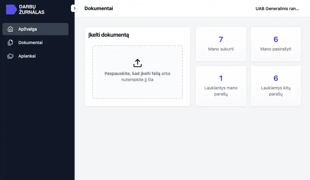 Visų dokumentų valdymas vienoje vietoje – aiški kontrolė, versijos ir pasirašymai be chaoso.
