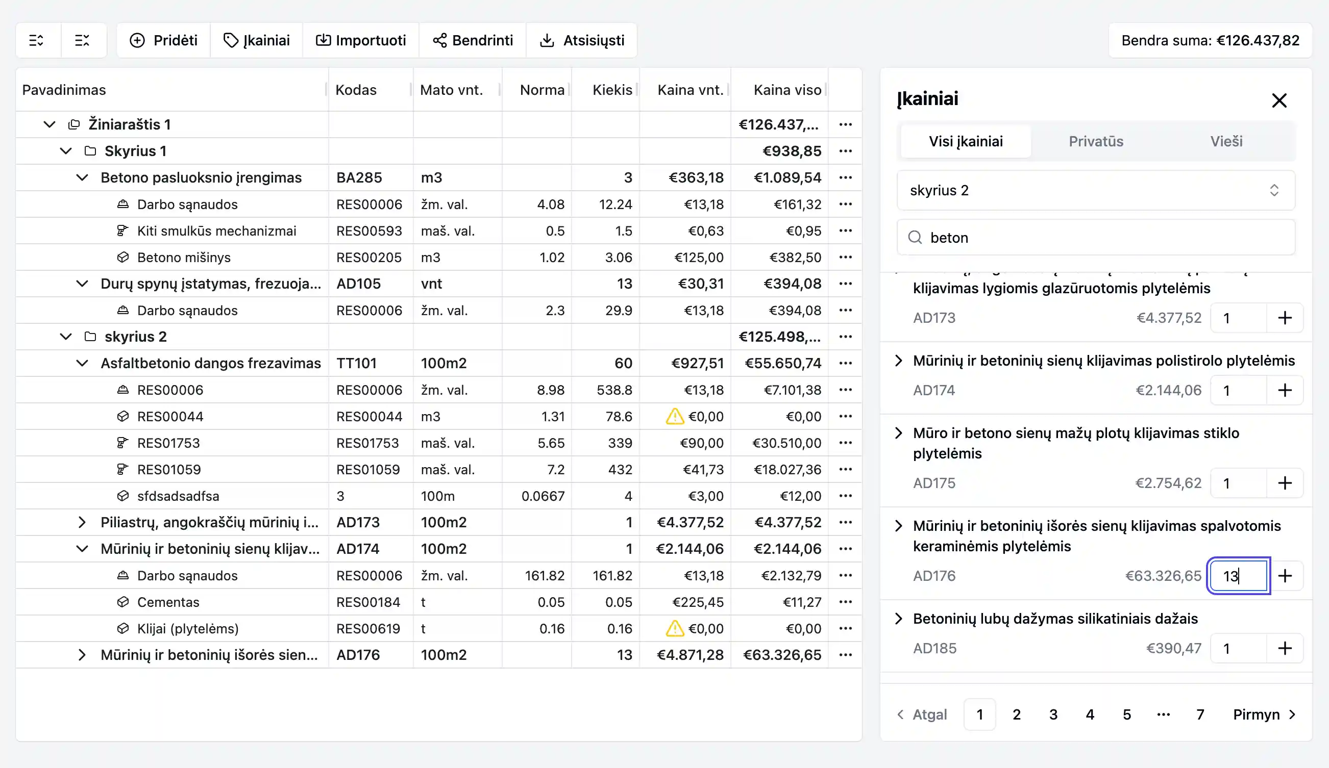 Sistema parenka aktualius įkainius pagal pateiktus kiekių žiniaraščius.